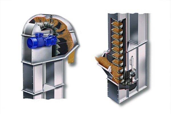 Bucket elevators, chain conveyors and angleveyors supplied in two casing sizes covering throughputs of 40tph through to 150tph cereals @ 750kg/m³